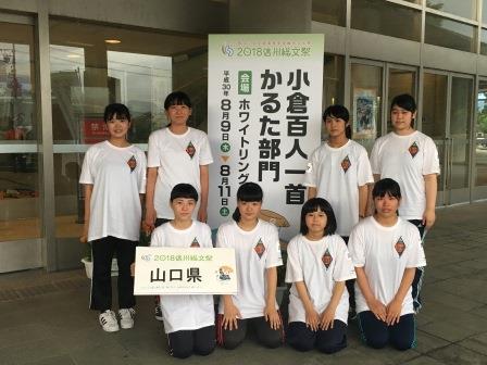 第19回中国地区高等学校小倉百人一首かるた大会が平成28年10月29~30日、岡山県倉敷市 水島武道館において開催され、見事山口県チームが優勝し、平成29年3月19日・20日に福島県郡山市で開催される第12回全国高校生かるたグランプリに中国ブロック代表としての出場権を獲得しました。