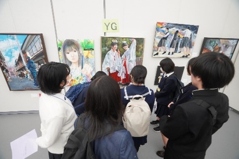 本年度の県総文祭美術・工芸部門は、11月7日から9日まで、山口県民文化ホールいわくに(シンフォニア岩国)で開催されました。本年度の美術・工芸部門には県内27校から118点(平面115点、立体3点)の出品がありました。本年度も質の高い作品が多く出品され、50号やB1サイズの大きな作品が多かったです。審査で26点が優秀賞に選ばれ、さらにその中から6点が来年度の全国高等学校総合文化祭〈2026あきた総文〉の出品候補作品に選ばれました。また、一昨年から設けられた奨励賞には、9点が選ばれました。