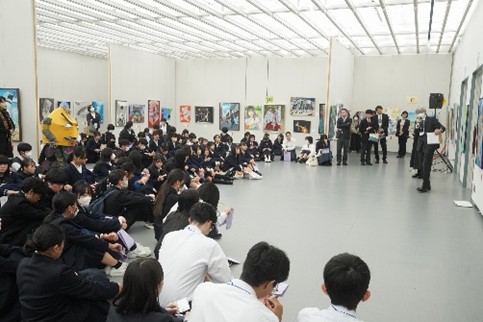一昨年から、展覧会の最終日に鑑賞会を実施しています。6名程度のグループに分かれ、各自が会場の中から選んだ作品についてグループ内で感想を述べ合います。グループでの鑑賞会の後に、最優秀賞作品を中心に審査員による講評会を行いました。講評会では参加した生徒以外にも、保護者や一般の方の姿も見られ、講評であったように思います。講評会後に、個別講評を希望する参加生徒に対して、審査員が手分けをして対応しました。本大会に参加することで、県内の各学校で日々制作をしている者同士が個々の感性や視点で互いの作品を鑑賞し、意見を交換しあうことで、新しい考え方や感覚を得られたのではないでしょうか。美的な感覚や作品の表現について得られたものを、今後の創作に生かし、さらなる表現の高みを目指してほしいと思います。