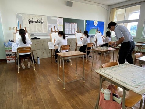 令和3年度から他都道府県でも行われているような、実技講習会が本県でも始まり、本年度で5回目の開催となりました。本年度は山口大学教育学部美術教育選修と山口芸術短期大学芸術表現学科の先生方に講師として御協力をいただき、会場をサビエル高等学校として、8月19日(火)に開催しました。暑い時期でしたが多くの高校生が参加しました。